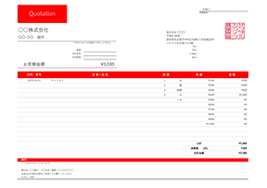 ヘッダーと詳細欄に赤色のチェックがデザインされているシンプルな構成の見積書です。