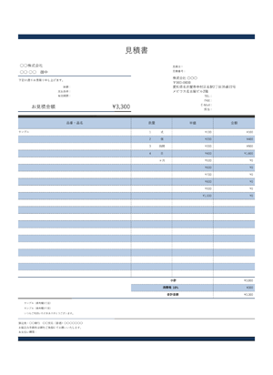 ベーシックなデザインで使いやすい、シンプルラインブルータイプの見積書テンプレートです。