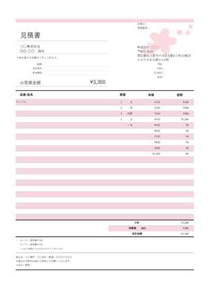 ピンクの桜をモチーフとした見積書テンプレートです。