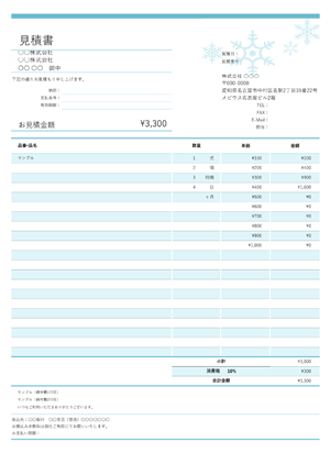 右上に雪の結晶のイラストがある見積書テンプレートです。