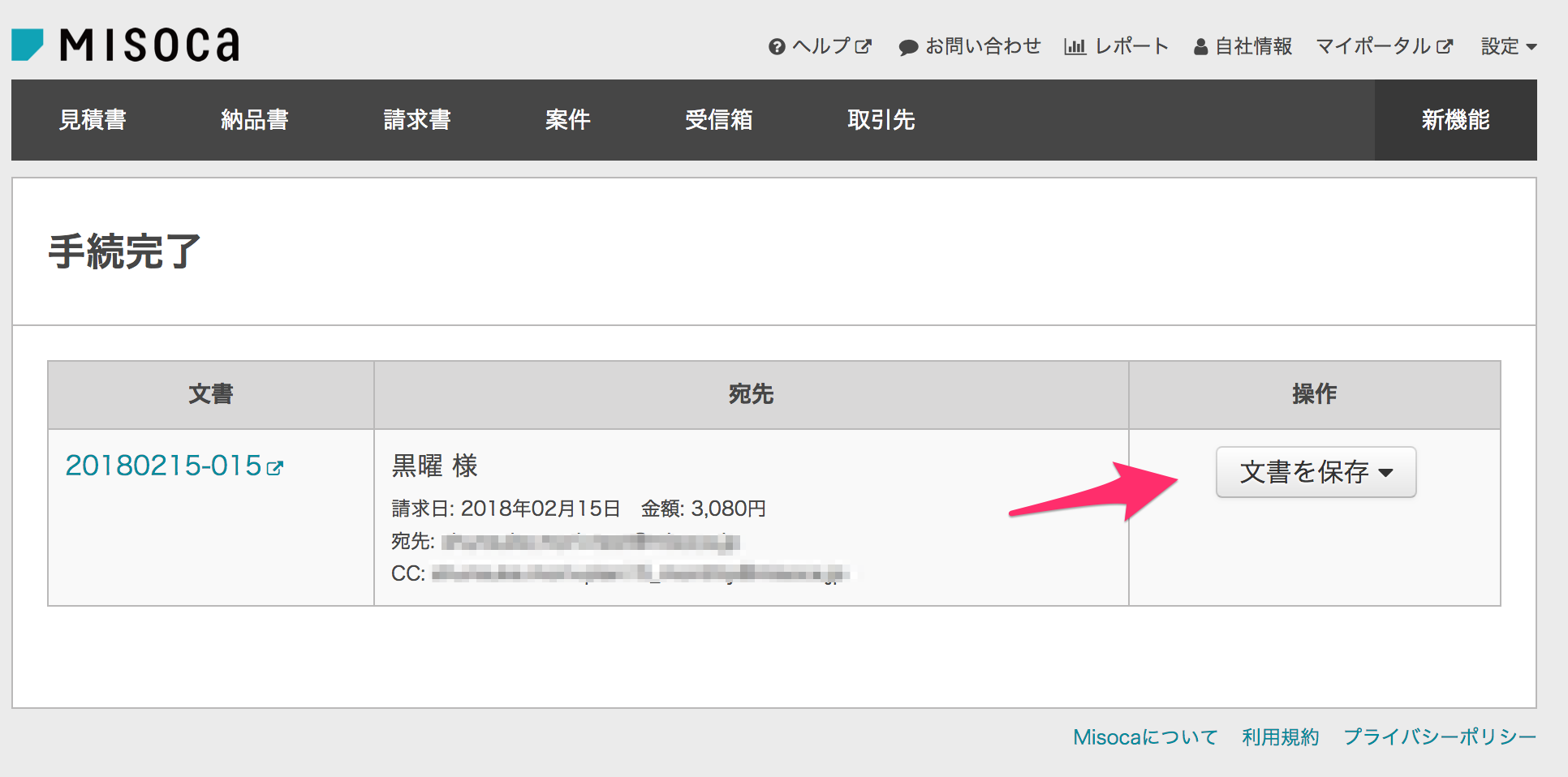 請求先名称 記入欄をクリックすると表示される 新機能のお知らせ よりご利用ください。